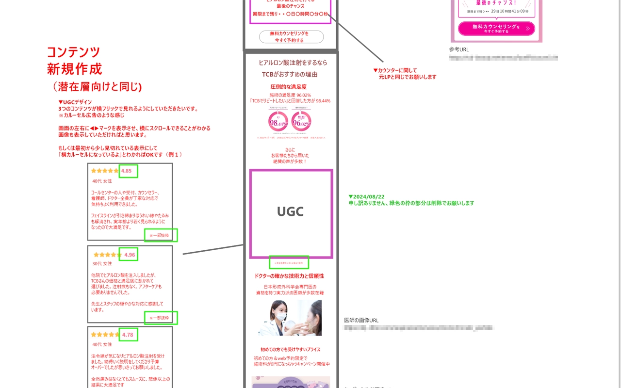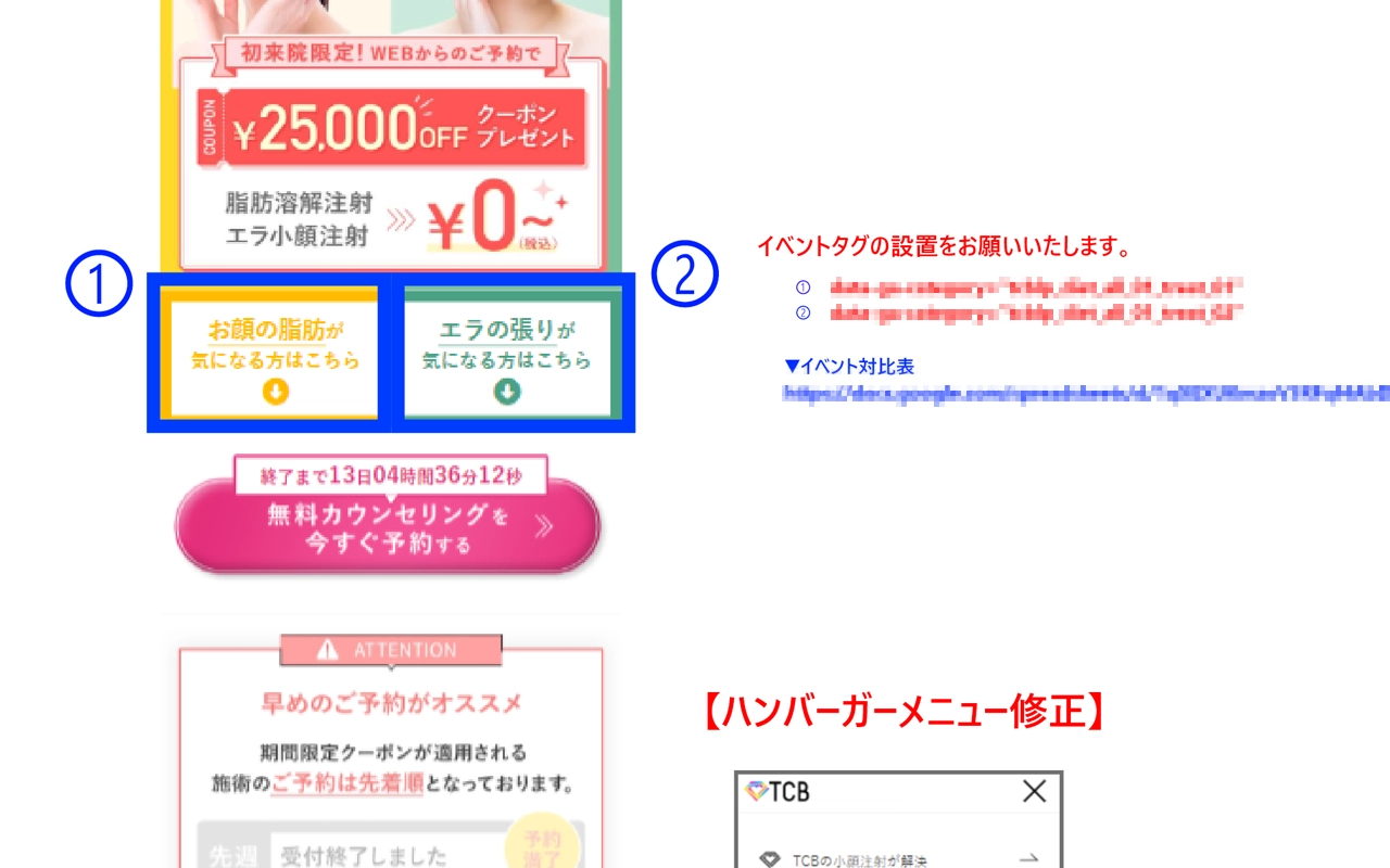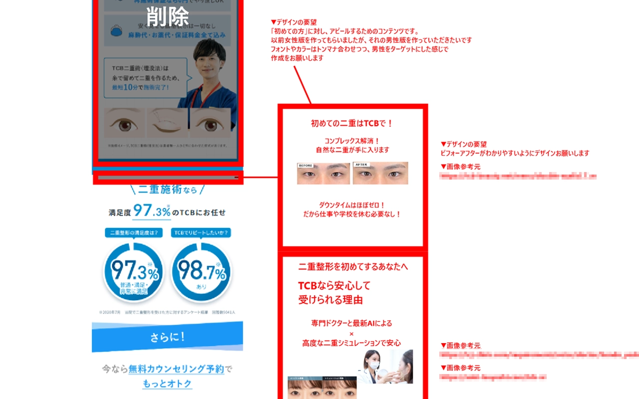 LPの数値改善業務のディレクション:大手美容外科クリニックの各施術のLPを担当